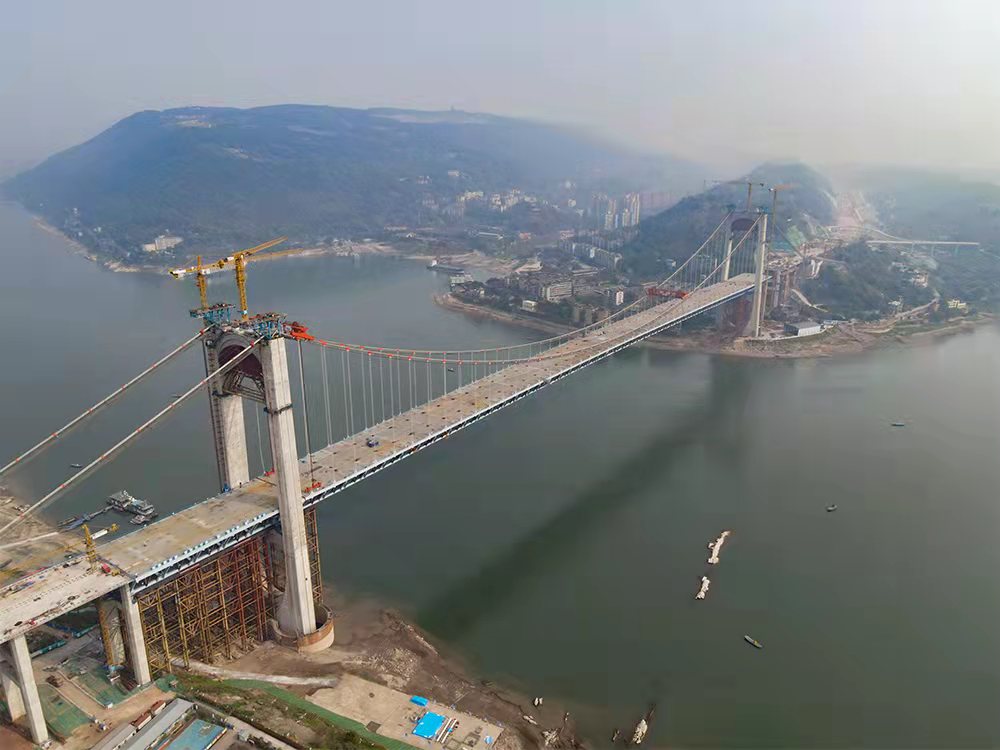 2022年3月15日,隨著最后一段鋼桁梁成功起吊,由招商交科主持設(shè)計的國內(nèi)最大跨度公軌兩用懸索橋——重慶郭家沱長江大橋順利實(shí)現(xiàn)合龍,標(biāo)志著大橋主體施工全部完成。大橋的索纜制造及上部安裝工作由招商交科下