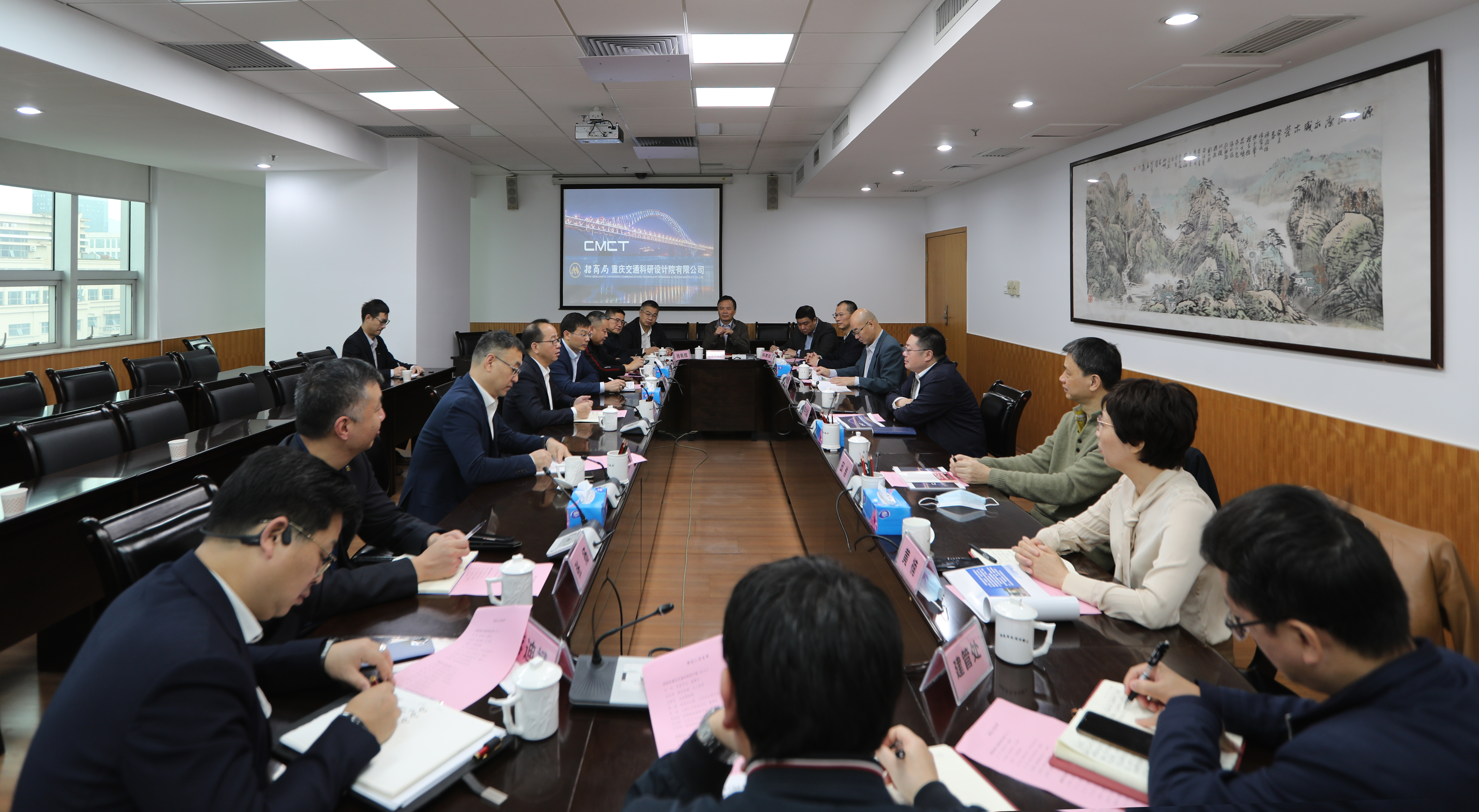 艾四芽對省交發(fā)集團的歷史沿革、組織架構、經(jīng)營范圍、技術特色、發(fā)展定位等作了詳細介紹。他表示,省交發(fā)集團在道路安全評估、內(nèi)河港口設計、隧道防災減災等方面正積極尋求合作伙伴,愿與招商交科加強協(xié)同,攜手開拓市場。