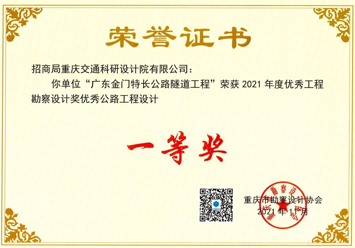 招商交科榮獲6項2021年度重慶市勘察設計協(xié)會優(yōu)秀設計獎