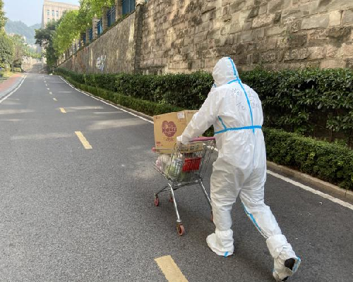 11月20日,交科園區(qū)內(nèi)出現(xiàn)確診病例,整個園區(qū)按照高風(fēng)險區(qū)域進行管控。物業(yè)服務(wù)團隊積極配合社區(qū)不定時開展核酸檢測、上門“追陽”、全面消殺、嚴把關(guān)口等工作。同時,為保障臨時封控樓棟業(yè)主正常生活所需,交科院物業(yè)服務(wù)團隊打通社區(qū)物資派送的“最后100米”,化身物資“配送員”,為“足不出戶”的社區(qū)居民采購、配送生活物資。