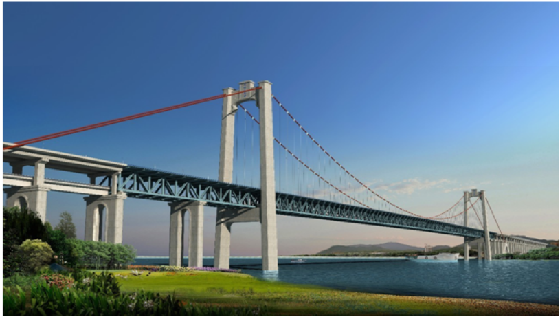 五峰山長江大橋位于江蘇鎮(zhèn)江,大橋主跨1092米,主橋為加勁鋼桁梁懸索橋;全橋主纜索股2×336束,每束索股由127根直徑為5.5毫米鍍鋅高強鋼絲組成,索股長度1932米,索股總重超過3.3萬噸。