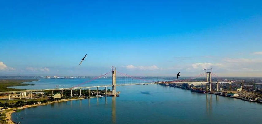 莫桑比克馬普托跨海大橋為非洲主跨徑最大的懸索橋,大橋采用單跨雙鉸懸索橋,主跨680米。雙主纜形式,每根大纜由91股主纜索股組成,每根索股采用高強鍍鋅鋼絲,強度1670MPa,規(guī)格為5-127,索股平均長度1318米,鋼絲總噸位3367噸,制作采用PPWS法。