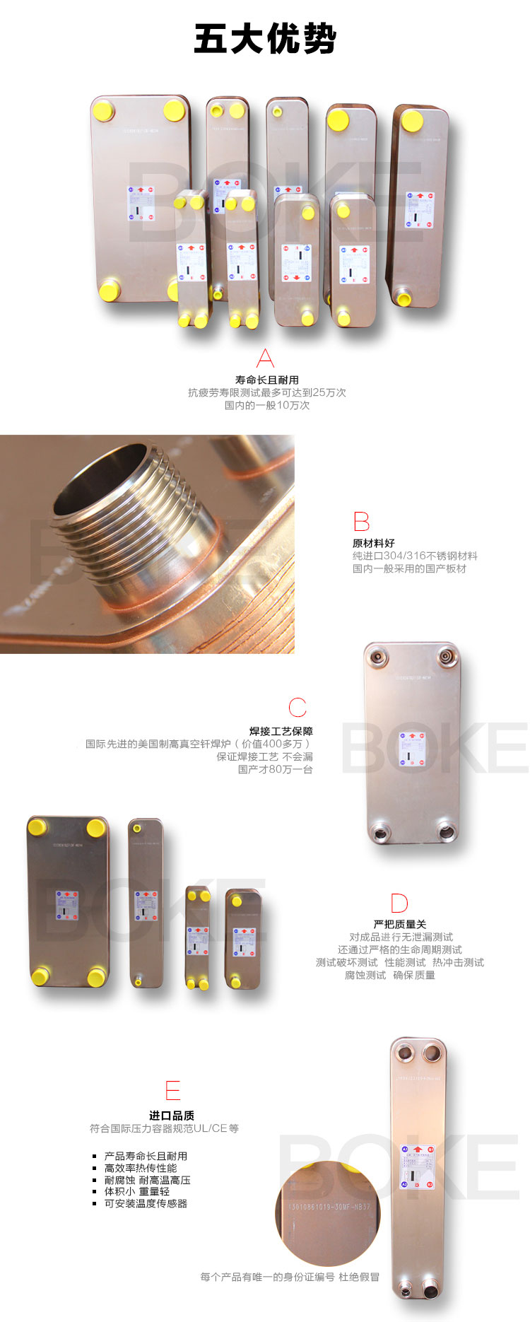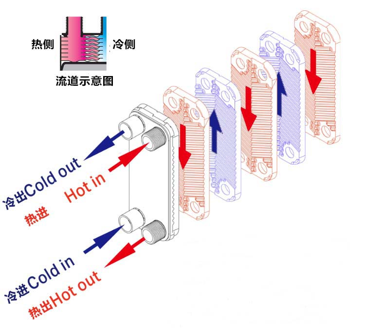 高力釬焊板式換熱器是由沖壓成形的山形波紋板片組成。根據(jù)不同的工況用途,使用不同的板紋設(shè)計(jì)和釬料將板片焊接成為板式熱交換器,并能在高溫高壓的工作系統(tǒng)中發(fā)揮高效率的熱傳性能,以達(dá)到節(jié)約能源的功效。