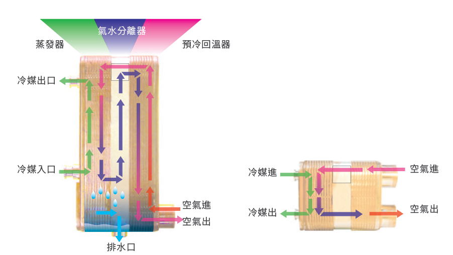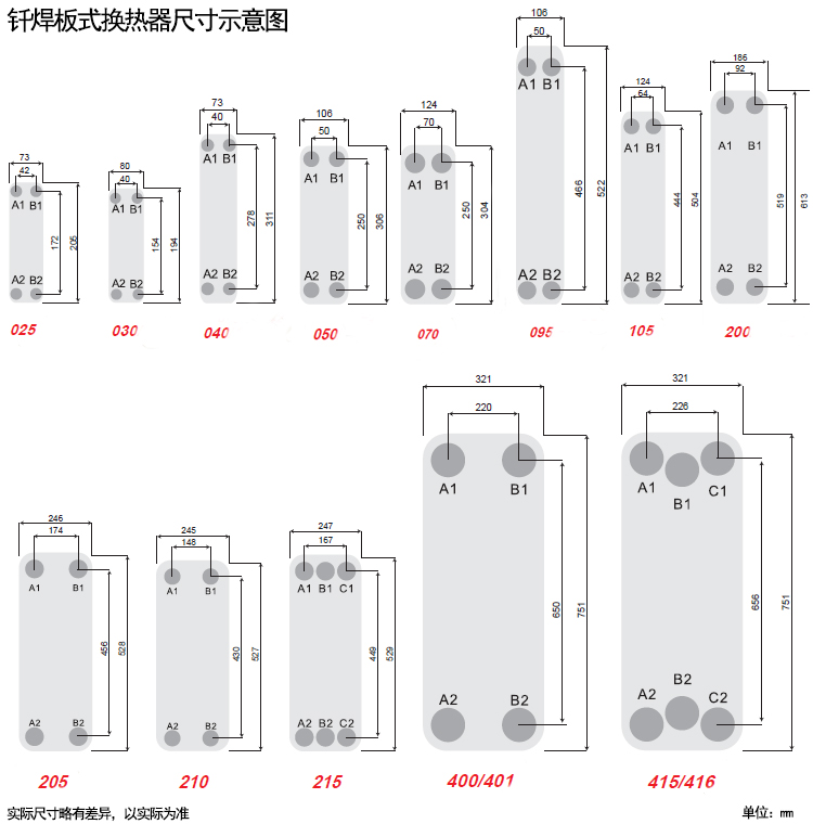 例如:A070-20-26,20為AIR-冷媒側(cè)蒸發(fā)器的板片數(shù)量,26為AIR-AIR側(cè)(預(yù)冷)的板片數(shù)量