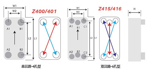 型式 | L1 | L2 | W1 | W2 | 重量 | H1厚度 | H2高 | 單片傳熱面積 | 容積 |